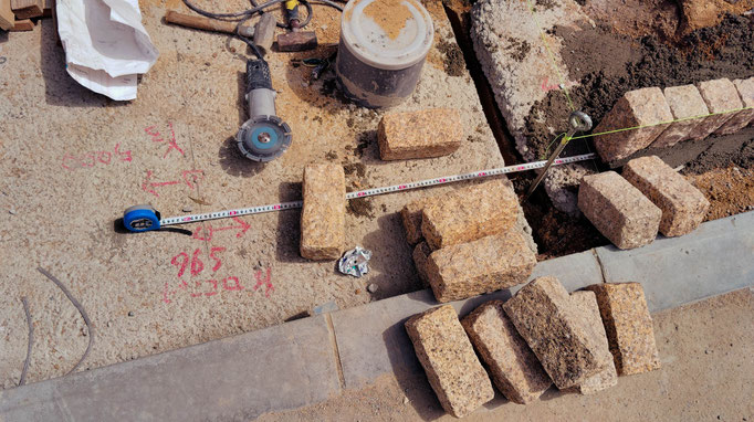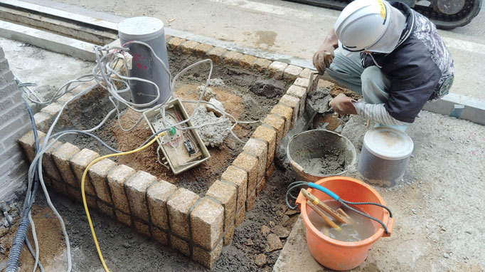 ・施工時は 水勾配をうまくとるように心がけた。しかし、飛び石が多いので水勾配をとるのはけっこう難しい。