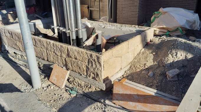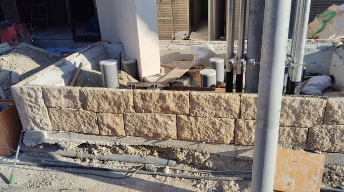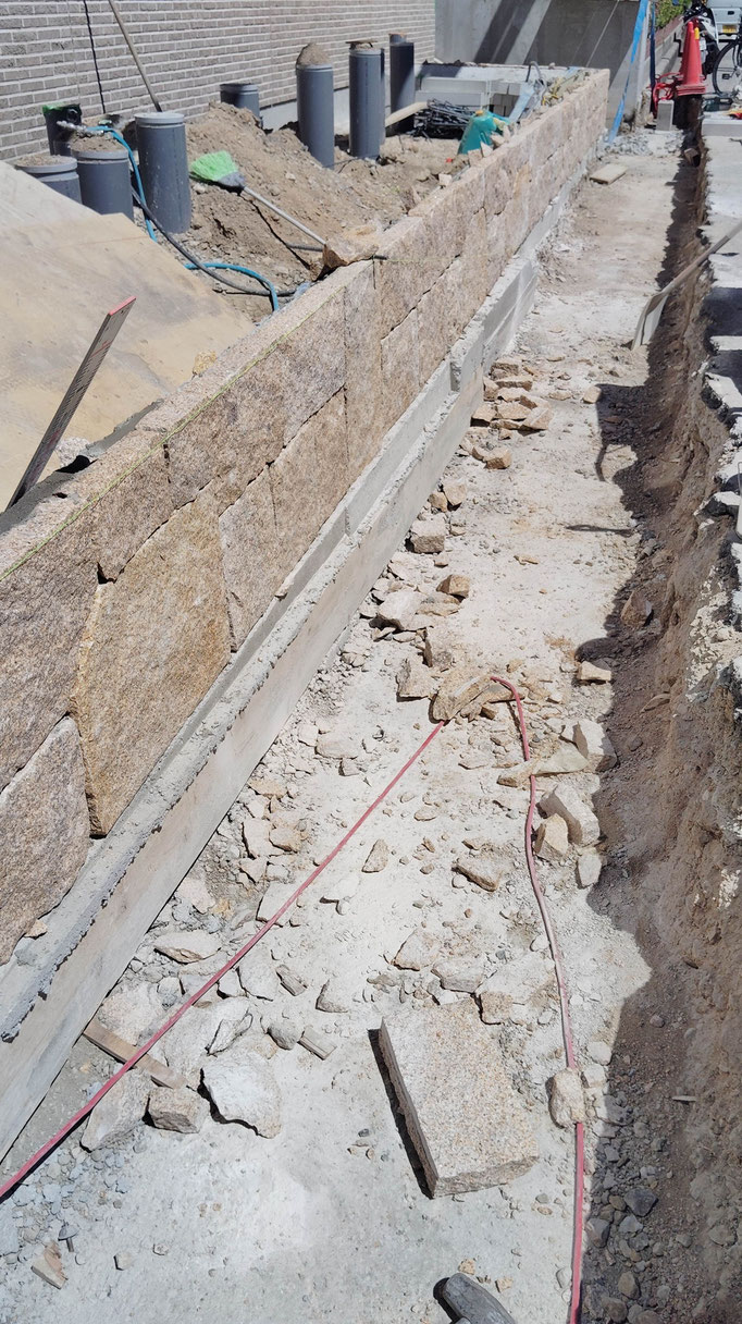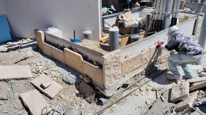 またここは山の斜面で 雨が降れば大量の水が来ます。その対策として透水性をよくするため裏込めは大栗石と砕石を混ぜてます。