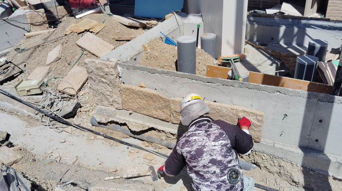 使用したのは、厚さ約70㎜の錆石の雑石と、9㎝×9㎝×19㎝サイズのピンコロ二丁掛。