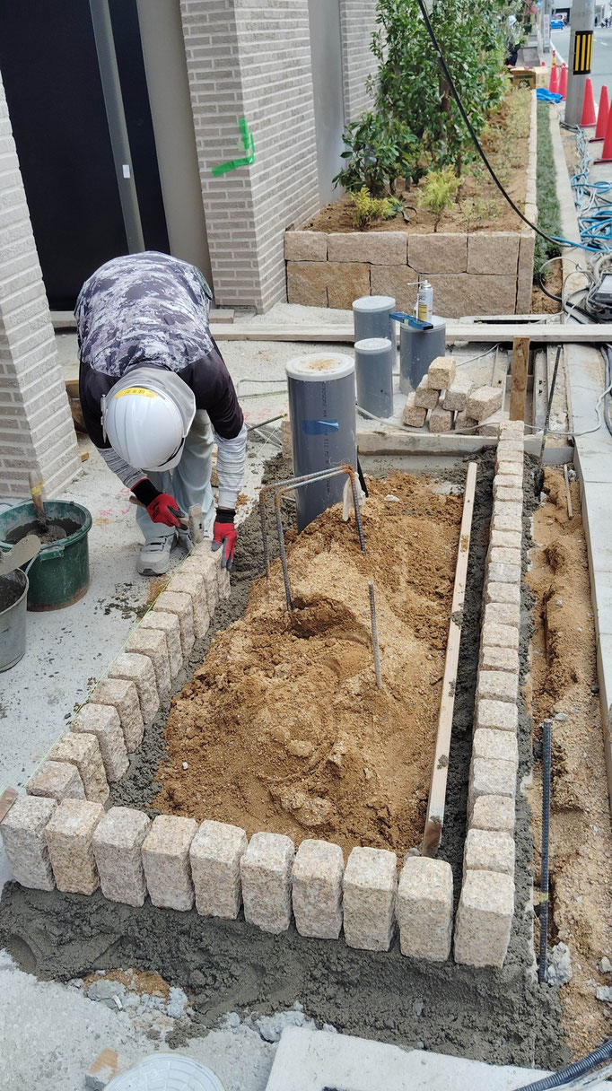お墓のお客様から、庭の雑草対策に石を敷き詰めてほしいと連絡がありました。