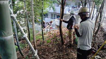 樹木を守りつつ、隣接地へのご迷惑を最小限に抑える施工をいたしました。