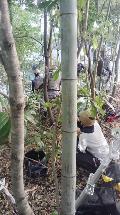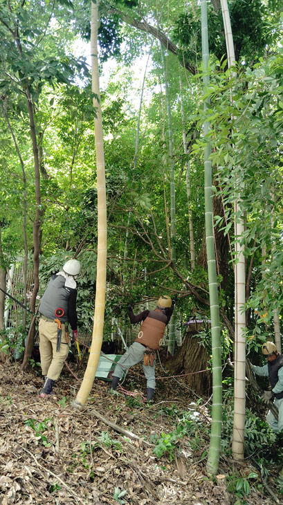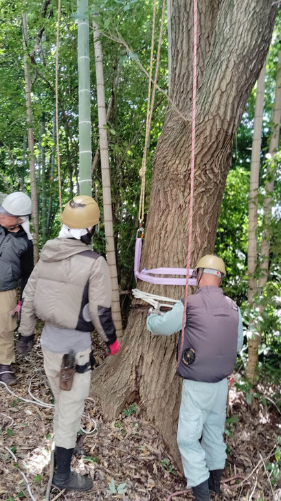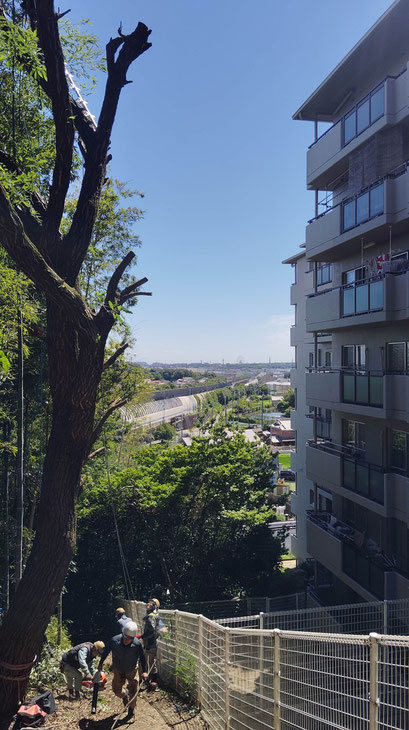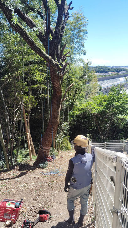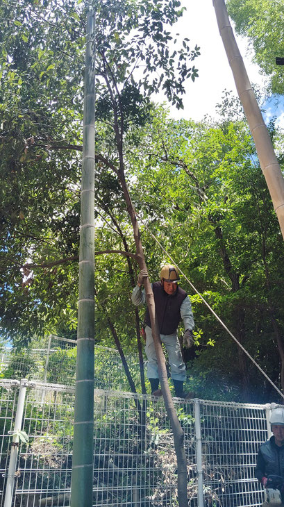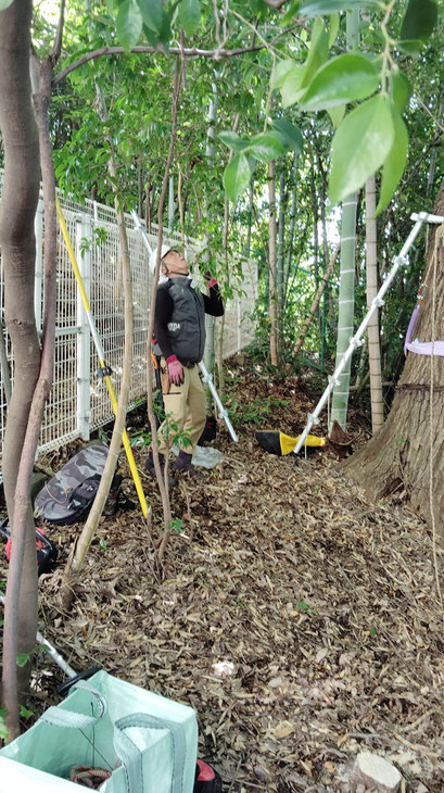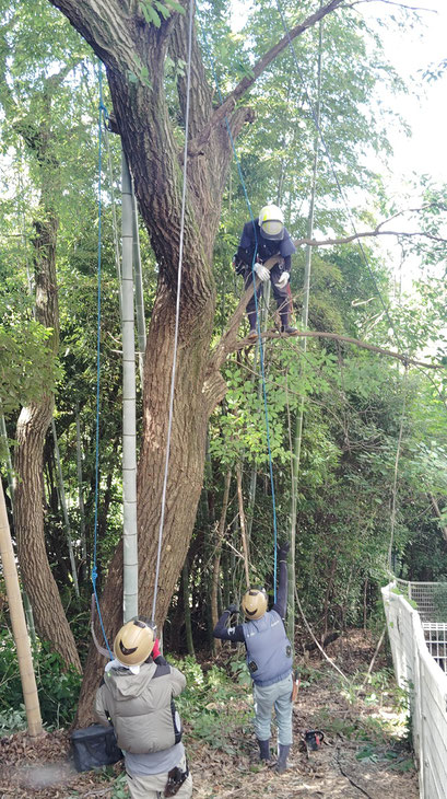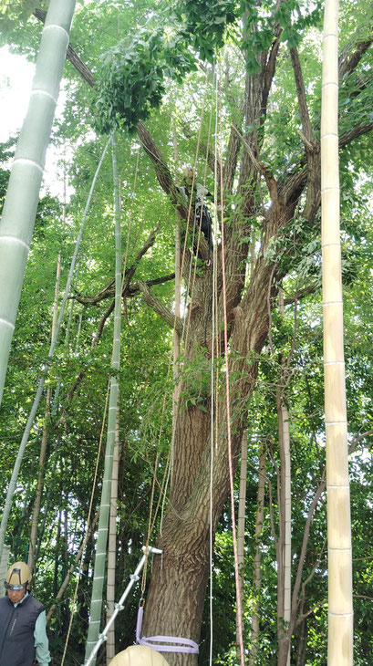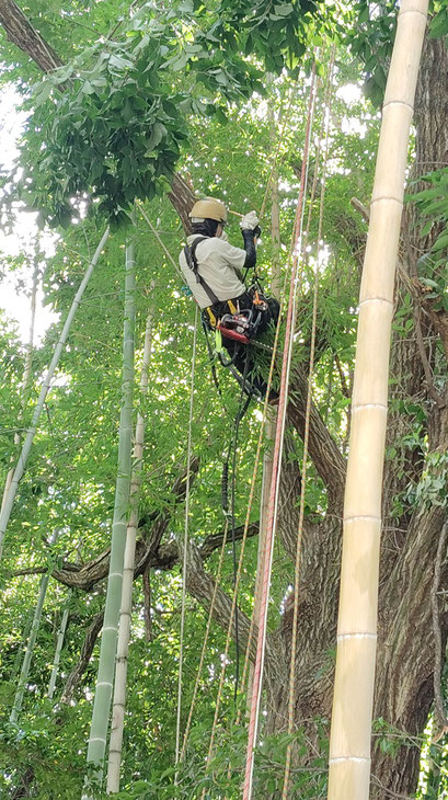 そこで弊社では、ロープワークによる高所作業を行い、枝を剪定。